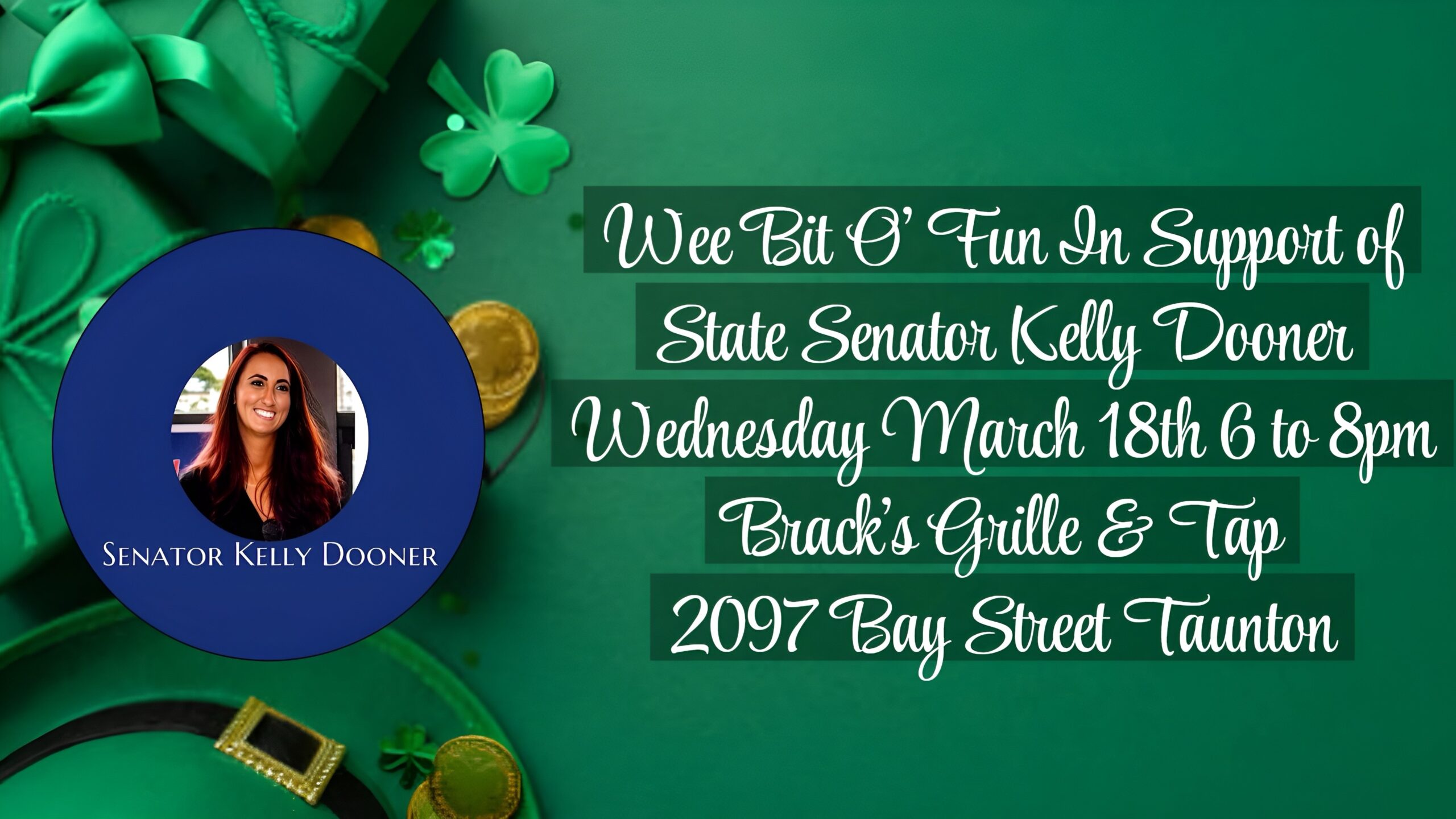 Please join State Senator Kelly Dooner for a Wee Bit O’ Fun…..
